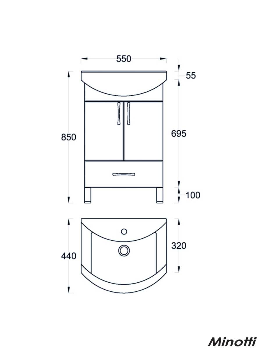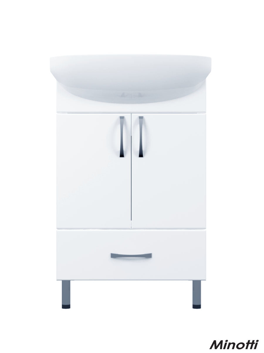 Lavabo sa ormarićem 55cm Uni Minotti izrađen najmodernijom tehnologijom u sferi izrade kupatilskog nameštaja predstavlja praktično i estetsko rešenje za uređenje kupatila. Ormarić od kvalitetnog pločastog materijala i oplemenjene iverice sa visokom otpornošću na vlagu. Dolazi u kompletu sa keramičkim umivaonikom sa otvorom za slavinu sa gornje strane.