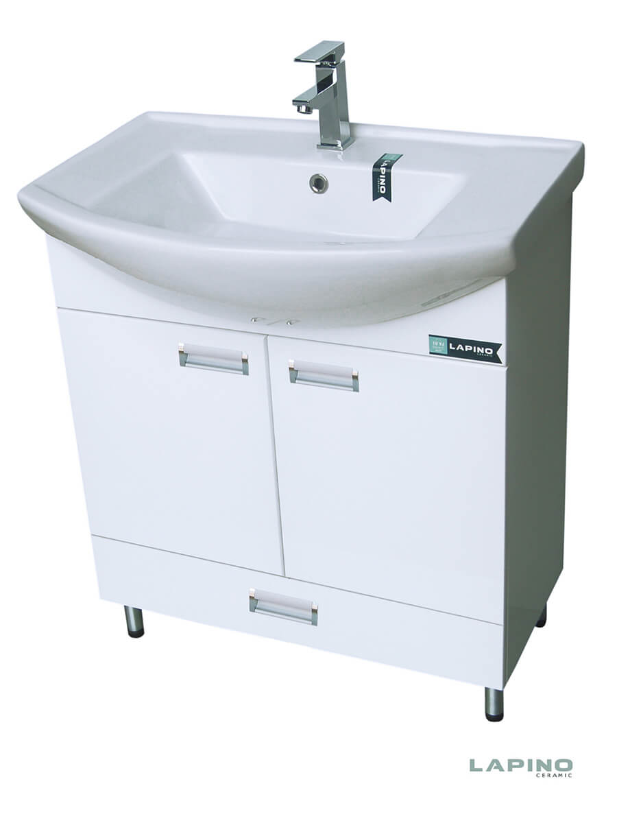 Ormarić sa umivaonikom 75cm Lapino predstavlja sjajan sklad funkcionalnosti i dizajna po pristupačnoj ceni za uređenje vašeg kupatila. Podni/stojeći ormarić za kupatilo bele boje sa dvoja vrata i fiokom. Izrađen od medijapana i iverice bojen poliuretanom ima savršen površinski sjaj, postojanost boje i otpornost na vlagu. Dolazi u kompletu sa belim keramičkim umivaonikom sa otvorom za slavinu.